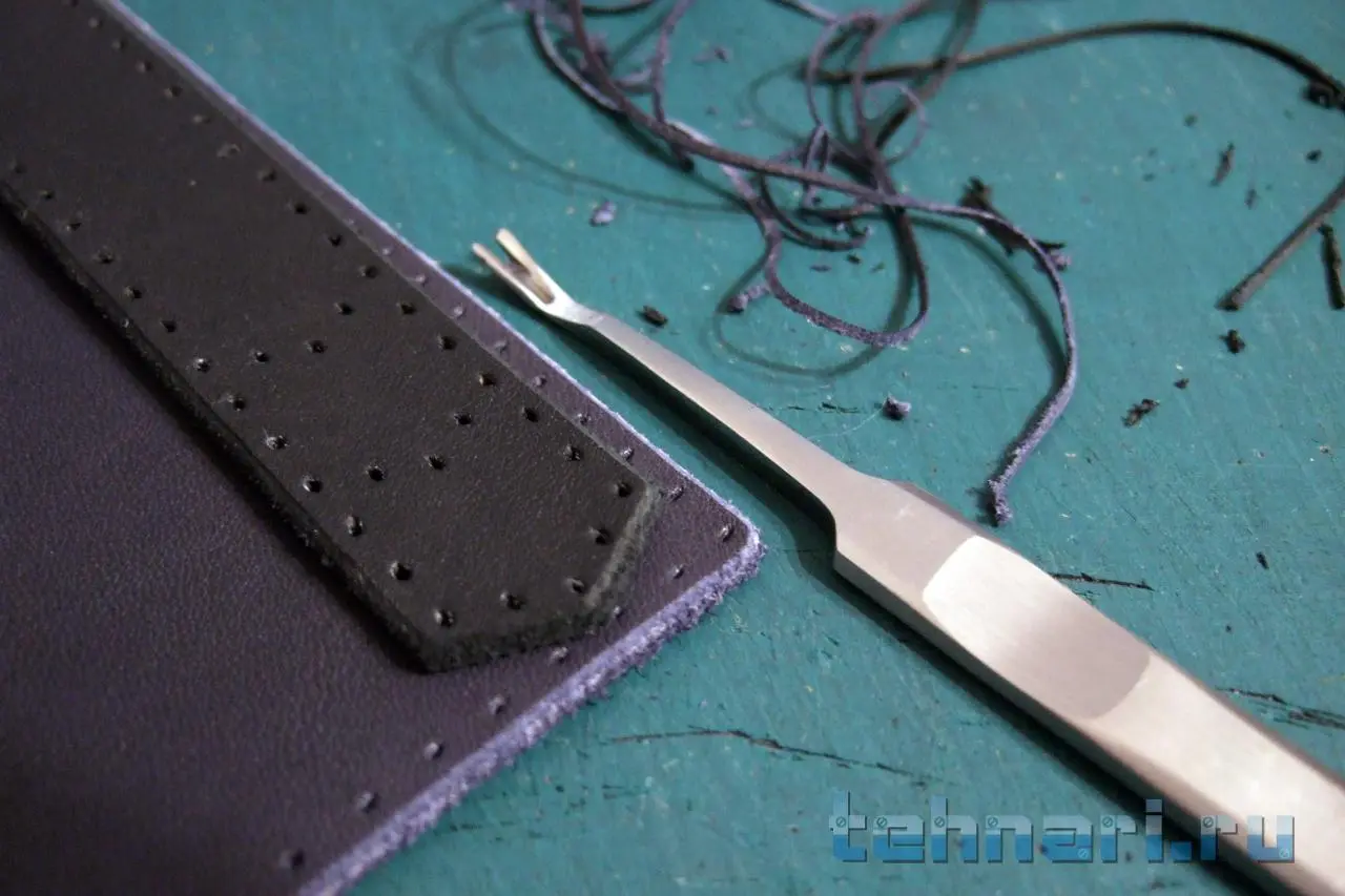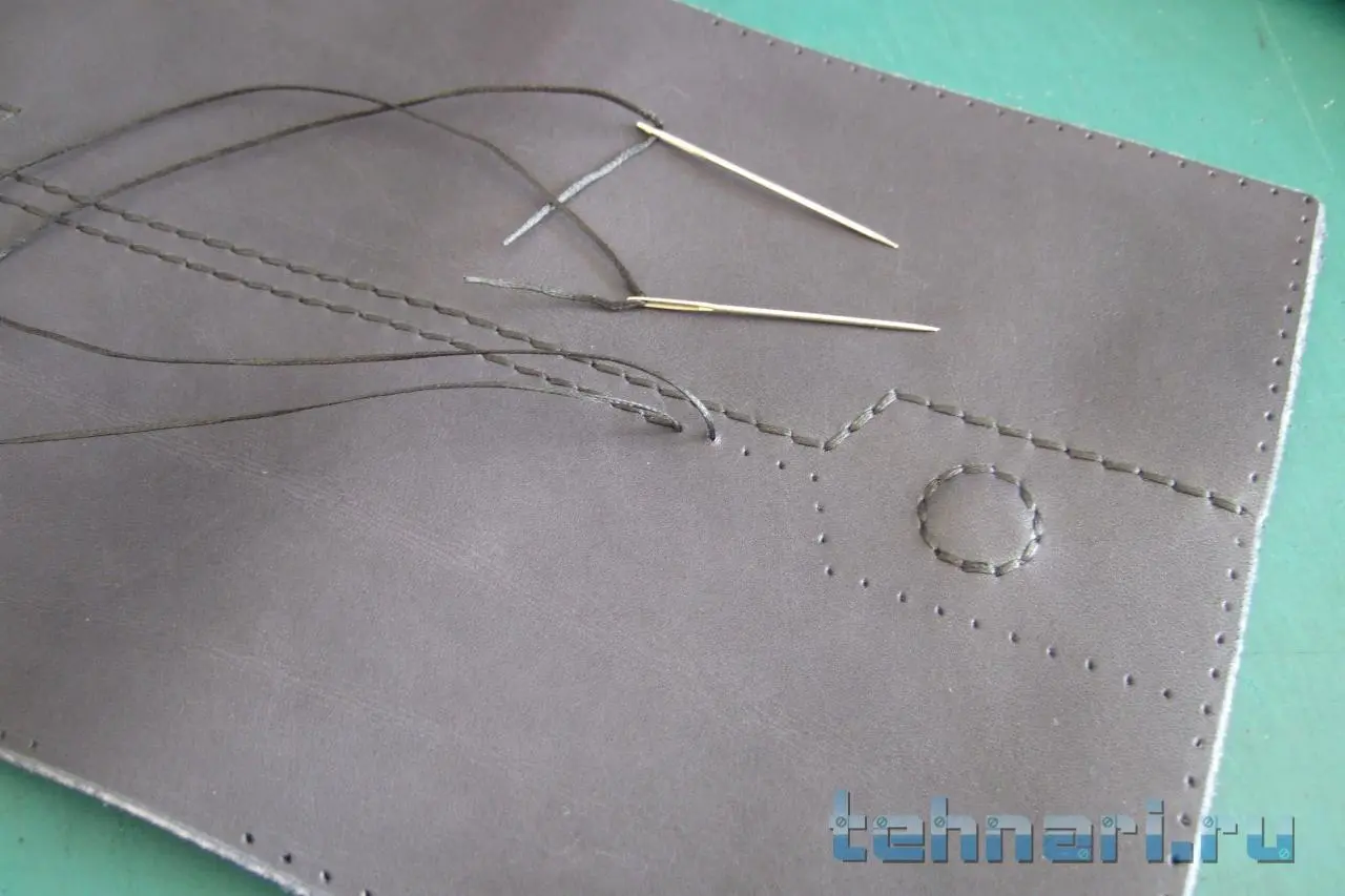 Прошил саму обложку. Вощеная плоская нить, седельный шов: