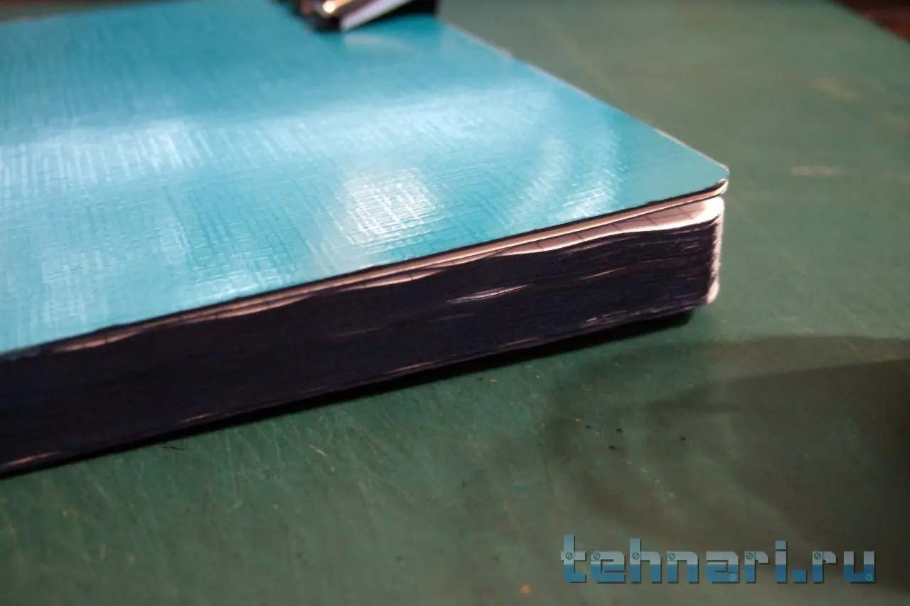 Торцы обложки прокрасил, прогладил, натер воском, заполировал: