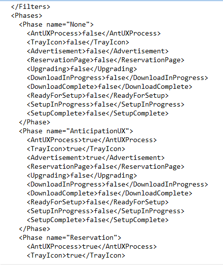 Следующие запланированные фазы, исходя из кода, — Reservation (бронирование своей копии Windows 10), сообщение о выходы RTM-версии, сообщение о выходы розничной версии, а также различные этапы апгрейда (UpgradeDownloadInProgress, UpgradeDownloaded, UpgradeReadyToInstall, UpgradeSetupCompatBlock, UpgradeSetupRolledBack и UpgradeSetupComplete).