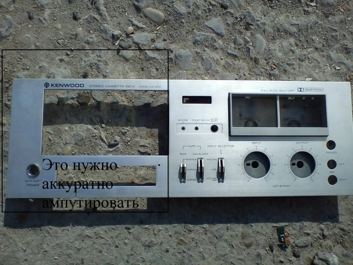 Будет лицевая сторона усилителя, там красивые стрелочные индикаторы, красивые ручки резисторов, сразу же встроенная подсветка..Тумблеры...Короче всё готовое..А лишнее убираю, что бы не было громоздким, лучше отрезать, нежели думать как дыру касетника закрыть))))