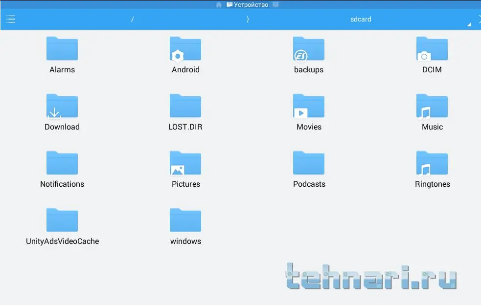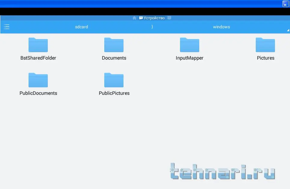 Скачав проводник, решил прогуляться по файлам, вот что я увидел, обычные андроидовские папки, кроме Windows, вот она и вызвала интерес