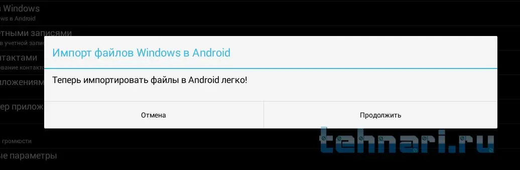Импорт файлов виндовс позволяет импортировать в андроид нужные нам файлы.