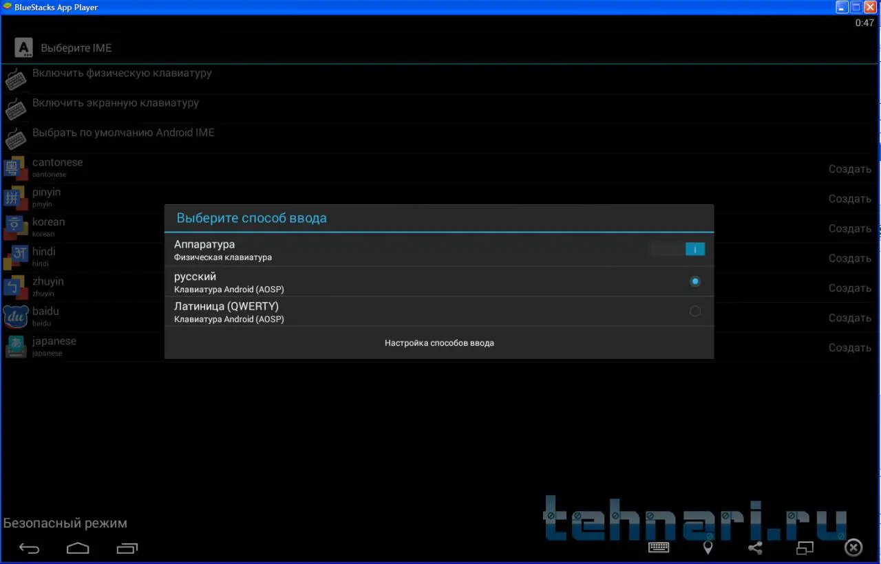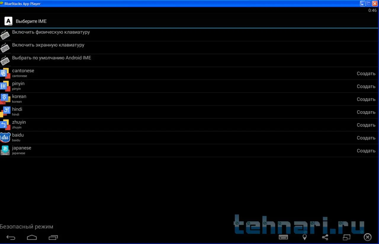 Выбор ИМЕ, данные настройки поваляют включить\выключить Физическую\Экранную клавиатуры а также выбрать способ ввода.