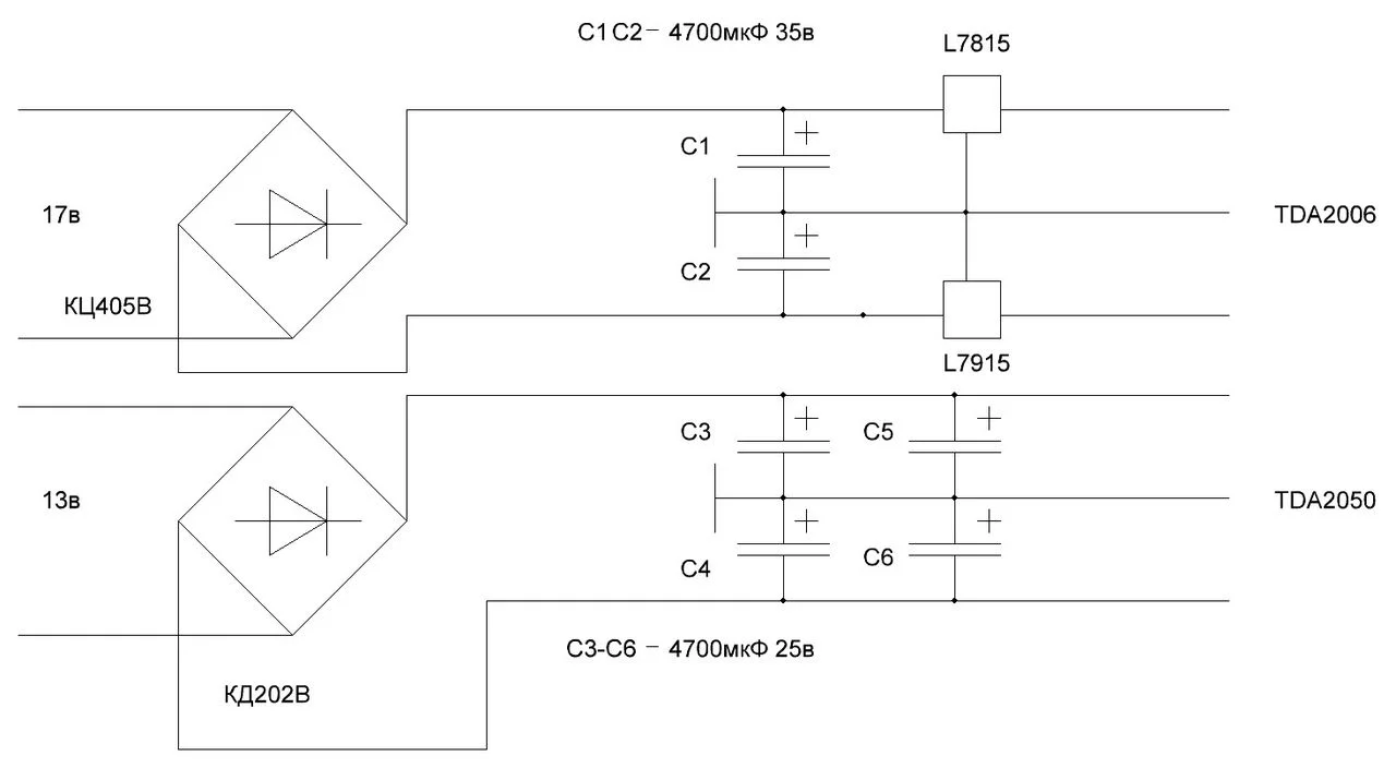 Здравствуйте,решил собрать свой первый усилитель 2.1,фронтальные ас сделал на динамиках 3гд-45 и 6гдв-2,усилитель для них на tda 2006,сабвуфер 25гдн-3-4 усилитель tda 2050,трансформатор взял от электрофона вега-119,в конце концов после сборки-спайки пошли проблемы,со всех трех усилителей с динамиков идет гудение и большой нагрев микросхем,для проверки подключал к источнику сигнала звук нормальный,схемы и печатные платы делал полностью по даташиту,и еще при замыкании входа с общим проводом наступает полная тишина,в общем что делать я незнаю,помогите пожалуйста.Фото усилителей и схемы питания прилагаю.