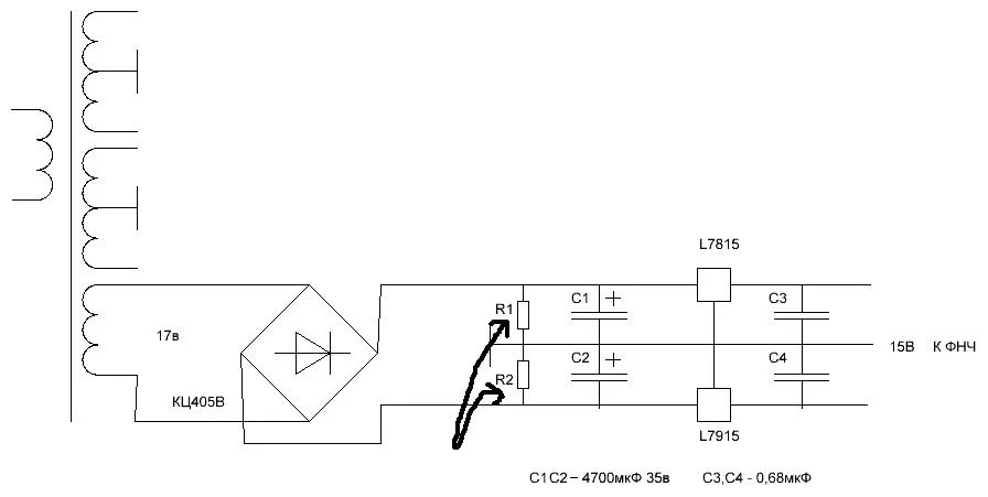 А вот еще такой вопрос появился.У этого трансформатора есть обмотка на переменое напряжение 17в,от нее был запитан проигрыватель пластинок,так как у меня в этом усилителе есть то фильтр фнч,а у обмотки нет отвода от середины.Можно ли запитать ею фильтр а общий провод из других обмоток использовать