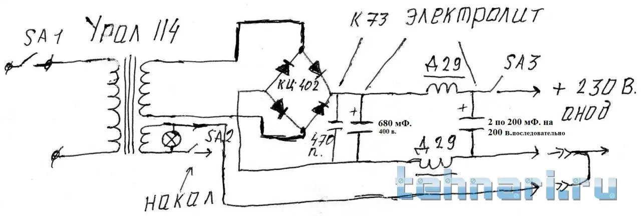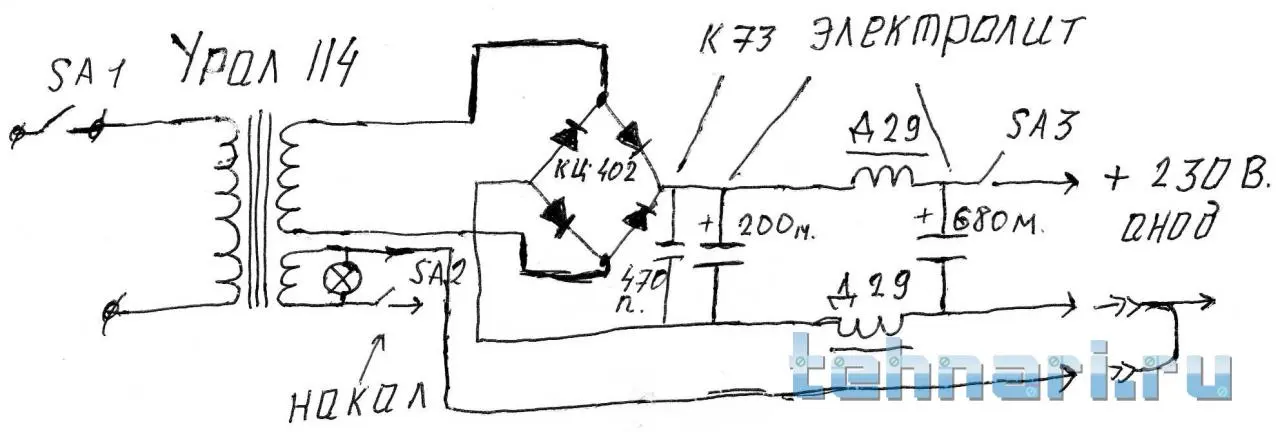 Я могу понять что КЦ402 был просто под рукой... Но сейчас импортные сборки имеют лучшие параметры и меньшие габариты. Есть же ультрабыстрые диоды наконец! Почему схема без предохранителей "по сети" и "по аноду"?