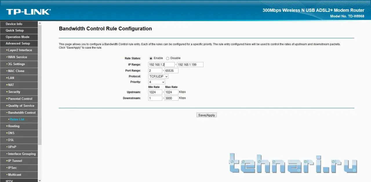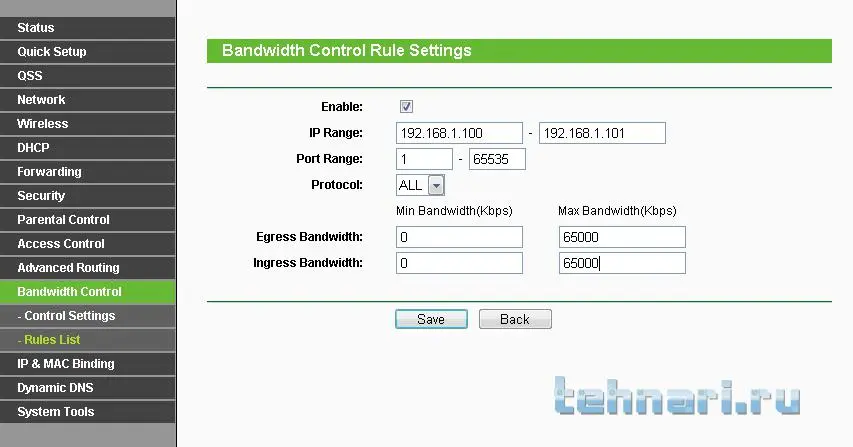 Я ограничил скорость всем ип адресам начиная от 192.168.1.101 до 192.168.1.199.
