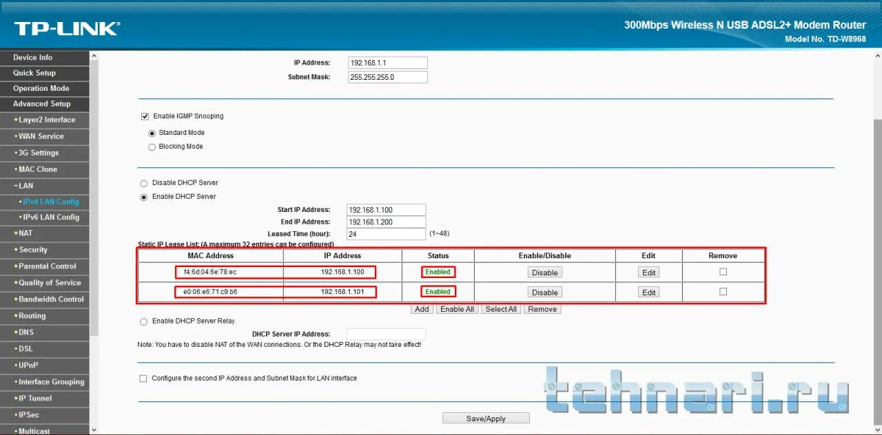 На вашем скрине просто два статических IP-адреса, все остальные раздаются DHCP.