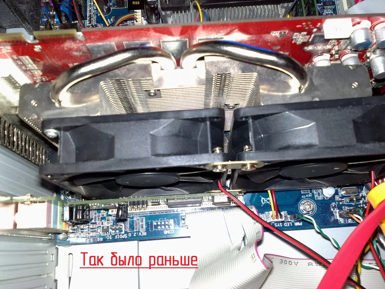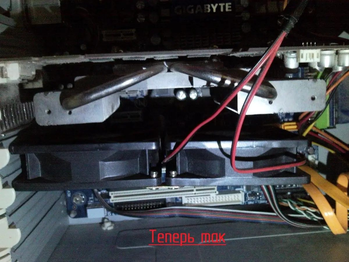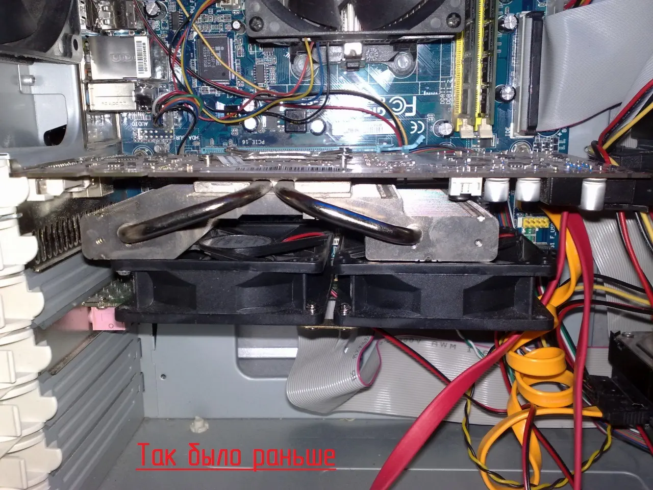 Как-то давно я решил, что один стандартный вентилятор 65мм у видиокарты совсем не подходит ей, да и не охлаждал он такой большой радиатор. Было решено как-то переделать всё это дело.