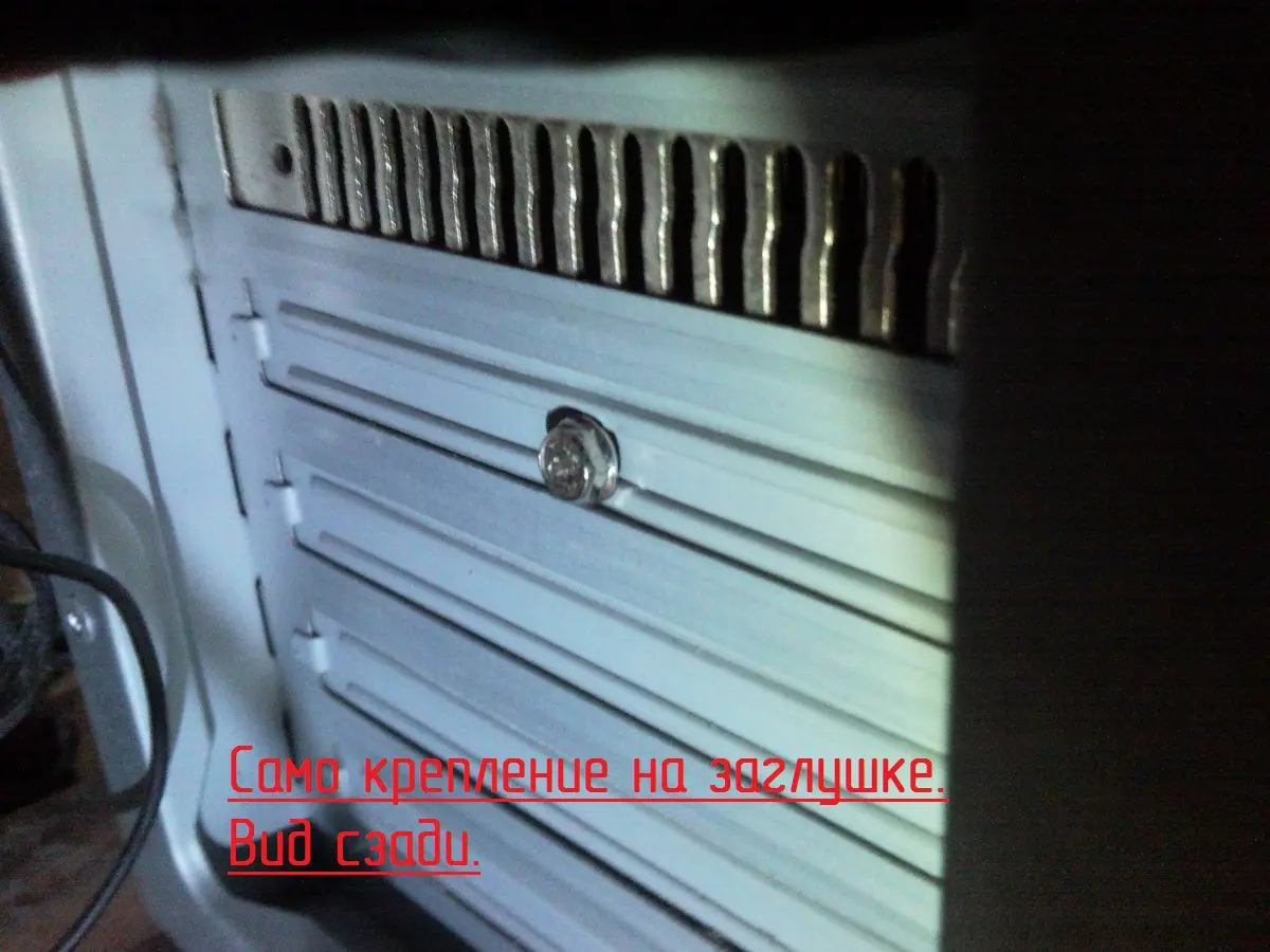 Короче, было решено присобачить эти два вентилятора к заглушке от задней панельки. Посадил я их просто напросто на болтик. Теперь все четко! и хороший обдув остался, и держится все намертво, и снять теперь все это можно легким движением руки.