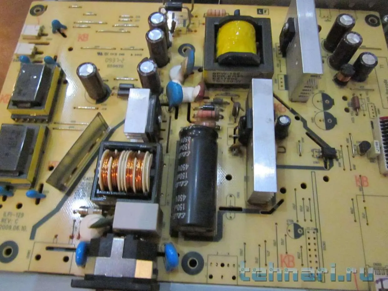 Действия должны быть такие: включаете монитор, как только появляется шипящий звук, выключаете свет (должна быть полная темнота) и смотрите на плату где происходит пробой изоляции. Д.б. заметен коронный разряд. Далее не отрывая взгляда с этого места включаете свет и фотографируете его крупно с хорошим разрешением. С указанием стрелочкой места разряда выкладываете фото сюда. Будем думать чем Вам помочь.