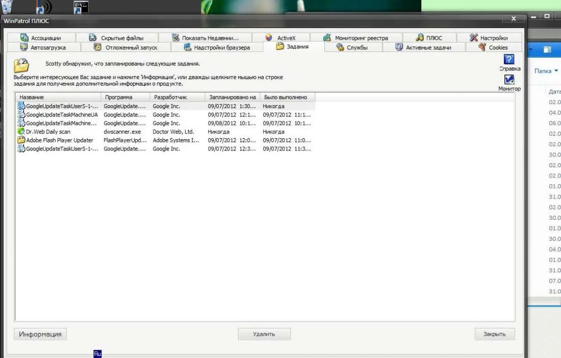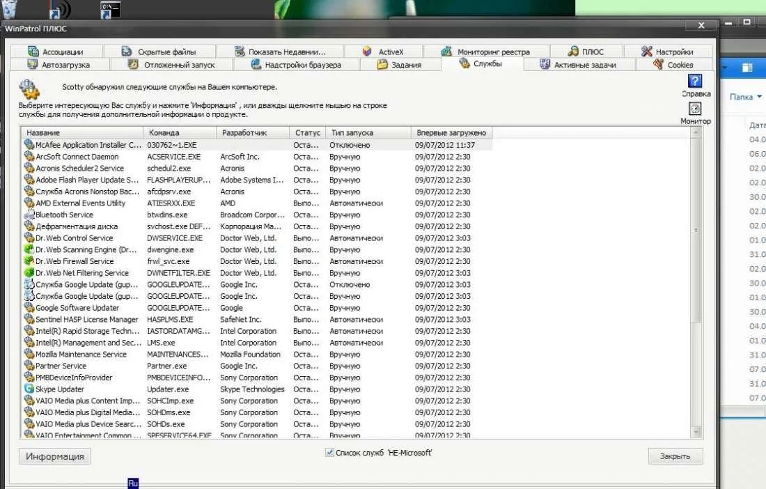 Не ссорьтесь, мальчики))))). ... Что-то с Win Patrol не совсем ясно мне, как тут ориентироваться. Перевод оставляет желать лучшего.С автозагрузкой и др. все понятно, а вот вкладки Задания и Службы не ясны. Здесь можно немного обсудить, или отдельно тему по программе создать? И в каком разделе не знаю. ... Посмотрите на скрины. В заданиях, думаю все удалить, кроме др.веба. В службах вообще 80% уже не нужного, т.к. проги удалены. Начал с McCafee, а в контексе пишет файл не найден. Так какого он здесь появился? Ключ не удаленный что-ли?