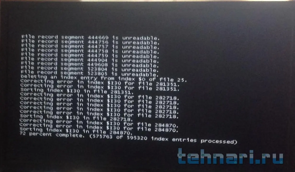 При трёх загрузках БИОС предложил мне "исправить ошибки на проблемном диске". Следует заметить что скорость исправления ошибок снижается при каждом новом разе (диск крашится?).