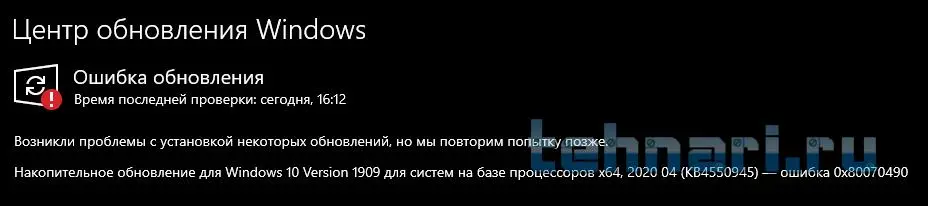 Привет. При попытке установить необязательное обновление выбивает ошибку 0x80070490 (скрин в приложении). Что пробовал: