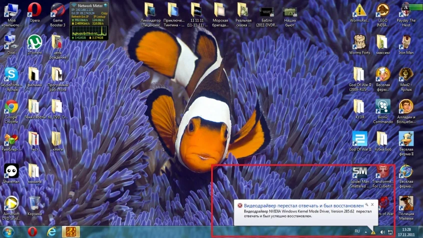 решил сам проблему объясню кратко , дело в том у каждой видеокарты свои дровира так вот дравира типа 3d видеокарт серии gts гиговых и более потходят для серёзных игрушек типа batelfild 3 так вот чтоб эта ошибка не выскакивала или в игре понизте качество или используйте другой плеер как видел ниже в другой теме похожую проблему , старайтесь обновлять драва чаще и установить панель управления nvidia которая будет отпровлять ошибки дравиров разработчикам для исправления их. Ошибки в написании если сеть то из- зы того что целый день провёл за кампом в поисках решения проблемы!