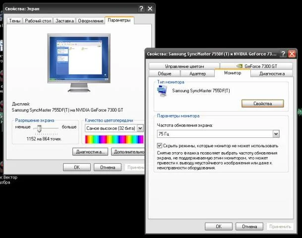 Правой кнопкой по рабочему столу, свойства, параметры, дополнительно, монитор.