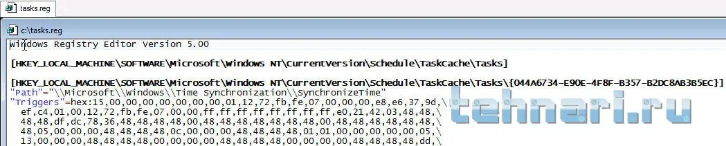 Скрытые папки с файлами показал, но вот c:\tasks.reg или c:\taskcache.reg среди них не было..