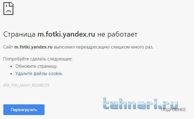 И вдруг от (Google) мне сообщает: «Страница m.fotki.yandex.ru не работает. Сайт m.fotki.yandex.ru выполнил переадресацию слишком много раз».