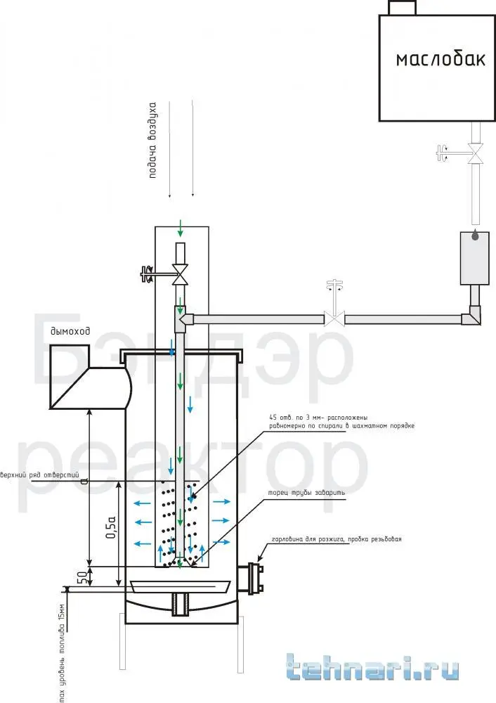 Я делаю например так, розжиг произвожу небольшим кусочком бумаги (картонка от коробки) смоченной в солярке, бросаю её в бак печи, поджигаю, и прикрываю заслонку на самый минимум, так что бы горела бумажка, но не сильно, и не тухла, т.е. за счет этого происходит постепенный прогрев масла, и нижнего бака печи, по мере разогрева масла, оно начинает гореть, но в горелку пламя не переходит, я спичкой поджигаю в горелке пары, тем самым я свожу к минимуму выбросы дыма в помещение, но дверь при запуске печи я открываю, ибо всё равно пока печь не выйдет в режим, дымок будет в помещении.