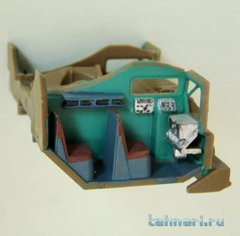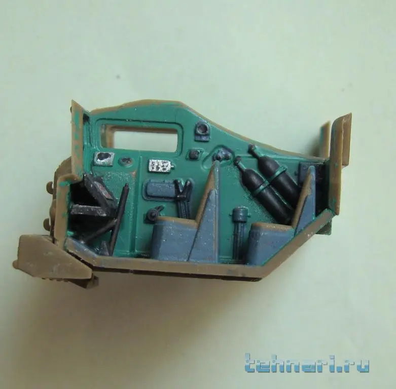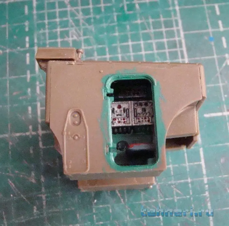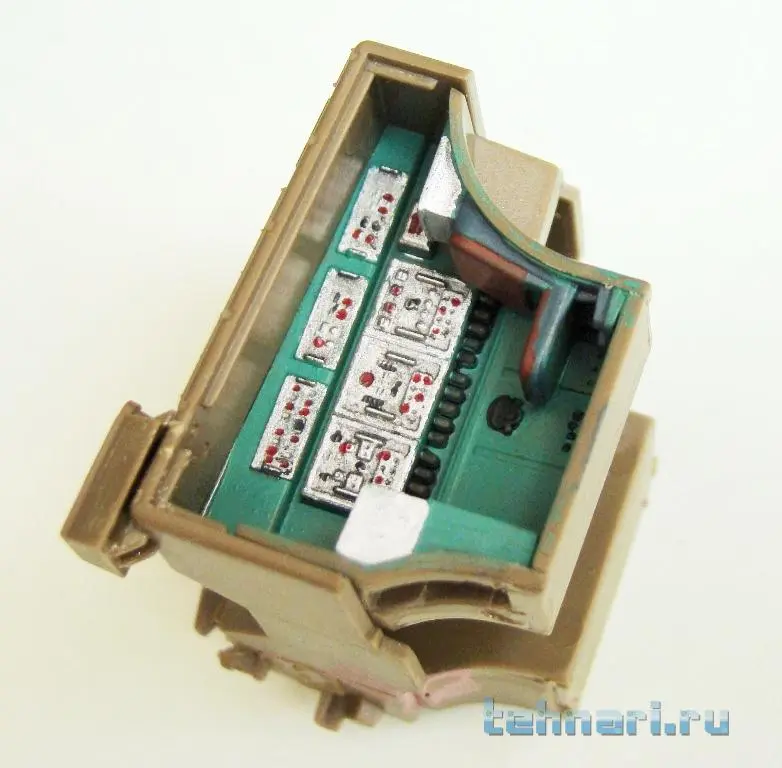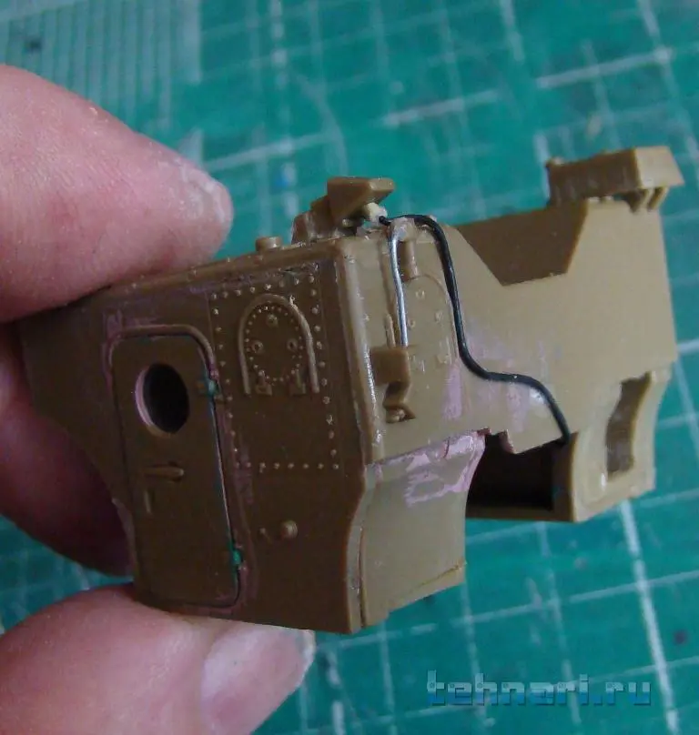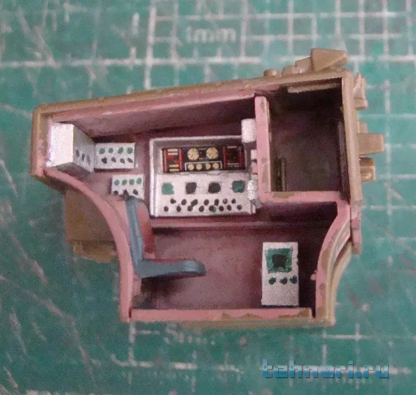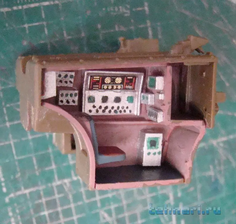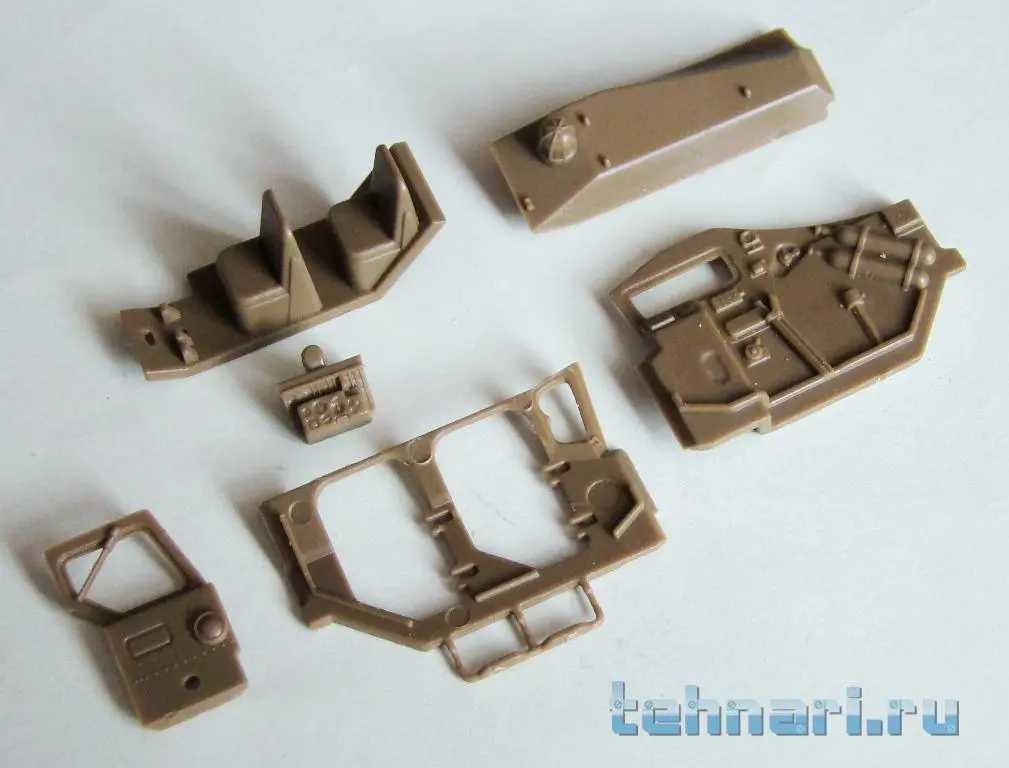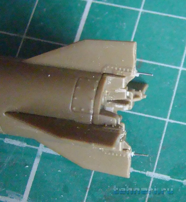 Сборка рампы начинается со сборки узла ее крепления к штоку гидроцилиндра подъема рампы. Затем из составляющих деталей и склеенного узла собирается вся рампа и соединяется через шарнирное крепление с поворотной рамой стартового стола. На крайних фото ракета установлена на рампе, рампа примерена на корпус автомобиля.