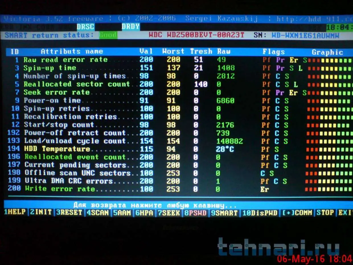 Вот прикупил HDD на 250 GB. Проверил в Victoria (Смарт и результат проверки прилагаются).