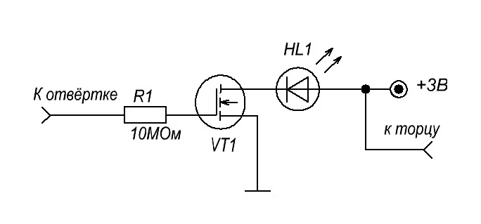 Вот объясните такую штуку. вот с виду есть обычная индикаторная отвертка. Как быяснилось она состоит из: 2 батарейки (как в лазерных указках); резистор; светодиод красный (индикация). И все это внутри обычной отвертки. 1)Так вот, замыкаешь жало отвертки одним пальцем, а другим пальцем касаешься торца ручки отвертки и загорается светодиод. Тут примерно ясно. 2)НО, при проверке напряжения светодиод светит тускло. Но также касаешься торца ручки индикатора загорается ярче. 3)Так же это "устройство" работает как индикатор скрытой проводки. Выше розетки/выключателя и тд. касаешься стенки горит тускло светодиод.