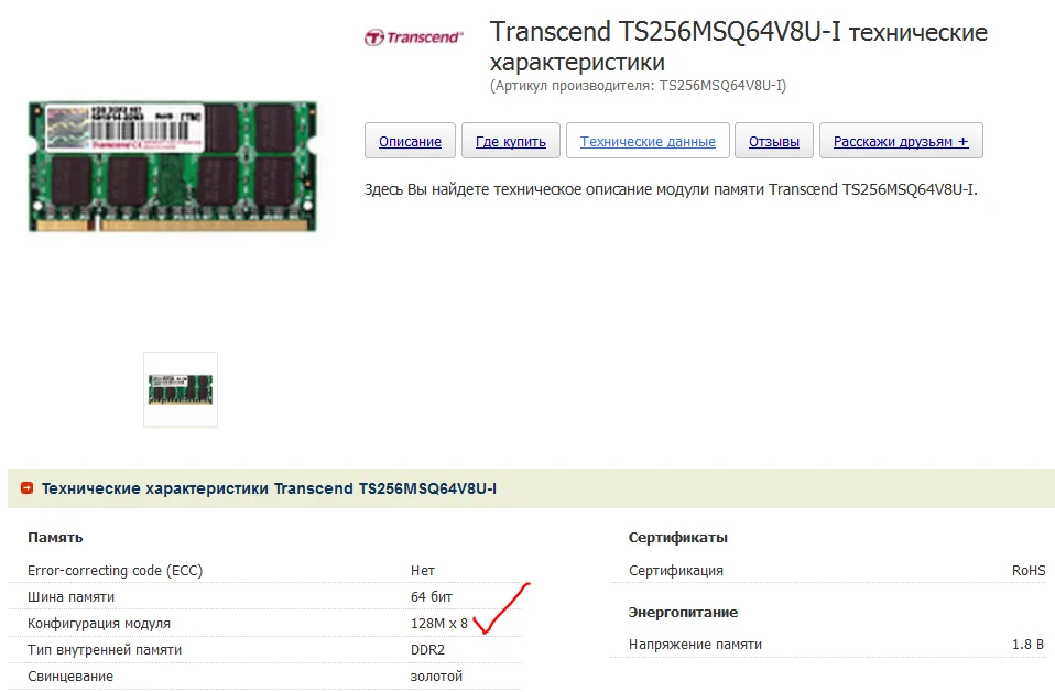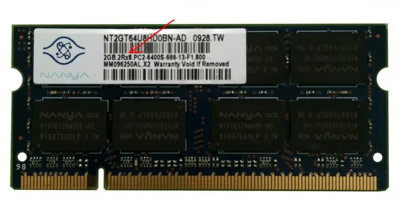 ... А вот такая, думается, не подойдет 2GB 200p PC2-6400 CL6 8c 128x16 DDR2-800 2Rx16 1.8V SODIMM, CXE - MemoryTen, ибо она уже на 16-ти битовых чипах.