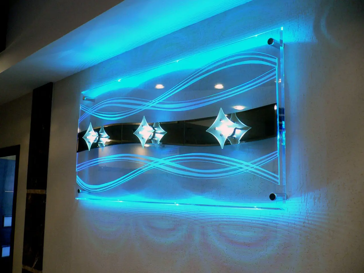Конструкция имеет два микроконтроллера ATmega8, один управляет подсветкой волн, а другой подсветкой фона. Получилось просто потрясающе!