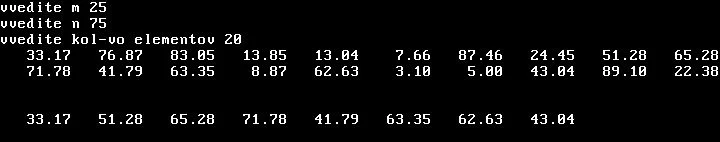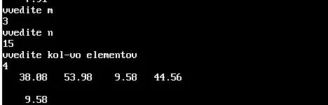 Задача: Заполнить одномерный вещественный массив случайными числами; найти такие из них, которые входят в интервал [m, n] (произвольные m и n вводятся с клавиатуры).