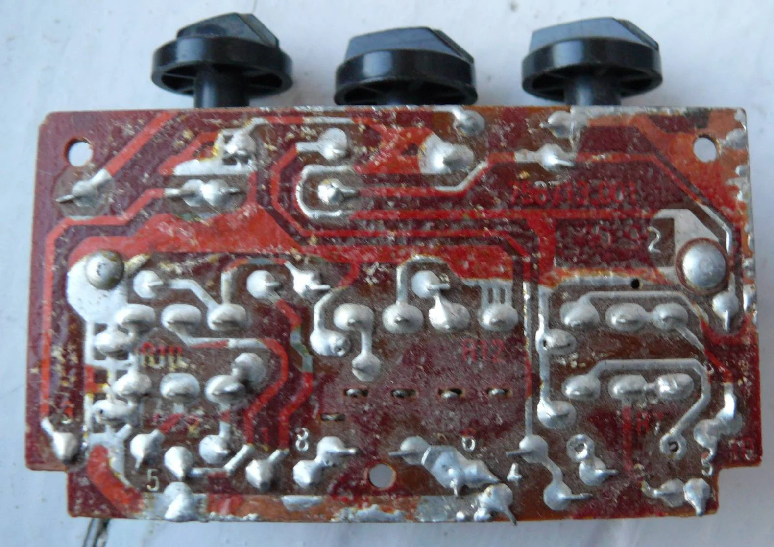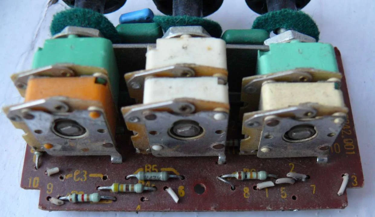 Здравствуйте!!!! Попал мне в руки пассивный темброблок... тперь возникла проблема с его подключением. Обращаюсь к знающим, в надежде на помощь в разрешении проблемы... Фото прилагаются... и ещё вопрос: почему средний переменный резистор не полностью пропаян? верхний ряд контактов пропаян, а нижний нетtehno015