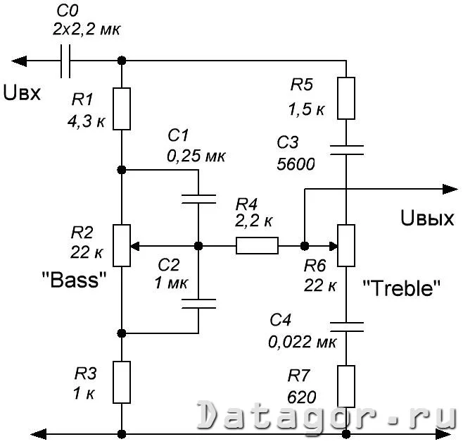 Вот типовая схема пассивного темброблока вам в помощь