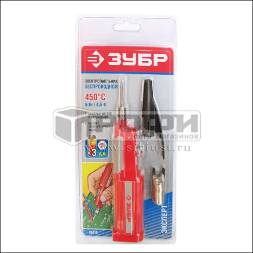 Паяльник ЗУБР беспроводной 6 Вт, 3хАА батарейки