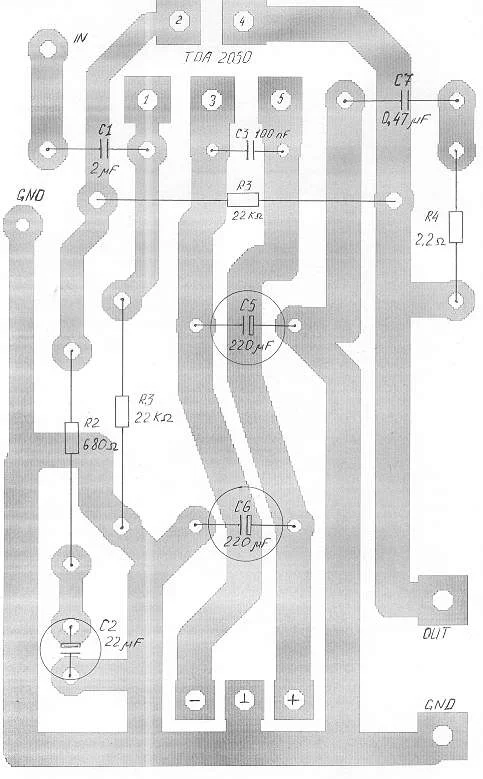 вот после того как у меня вылетела ТДА2050,я подумываю сделать для нее печатку,пока что есть материал,кто поможет дать печатку при которой микра будет выдавать 35ватт?питание двух полярное 18вольт переменки на трансформаторе ТСА70 сила тока,незнаю какова намотал медным проводом 0,9мм.......