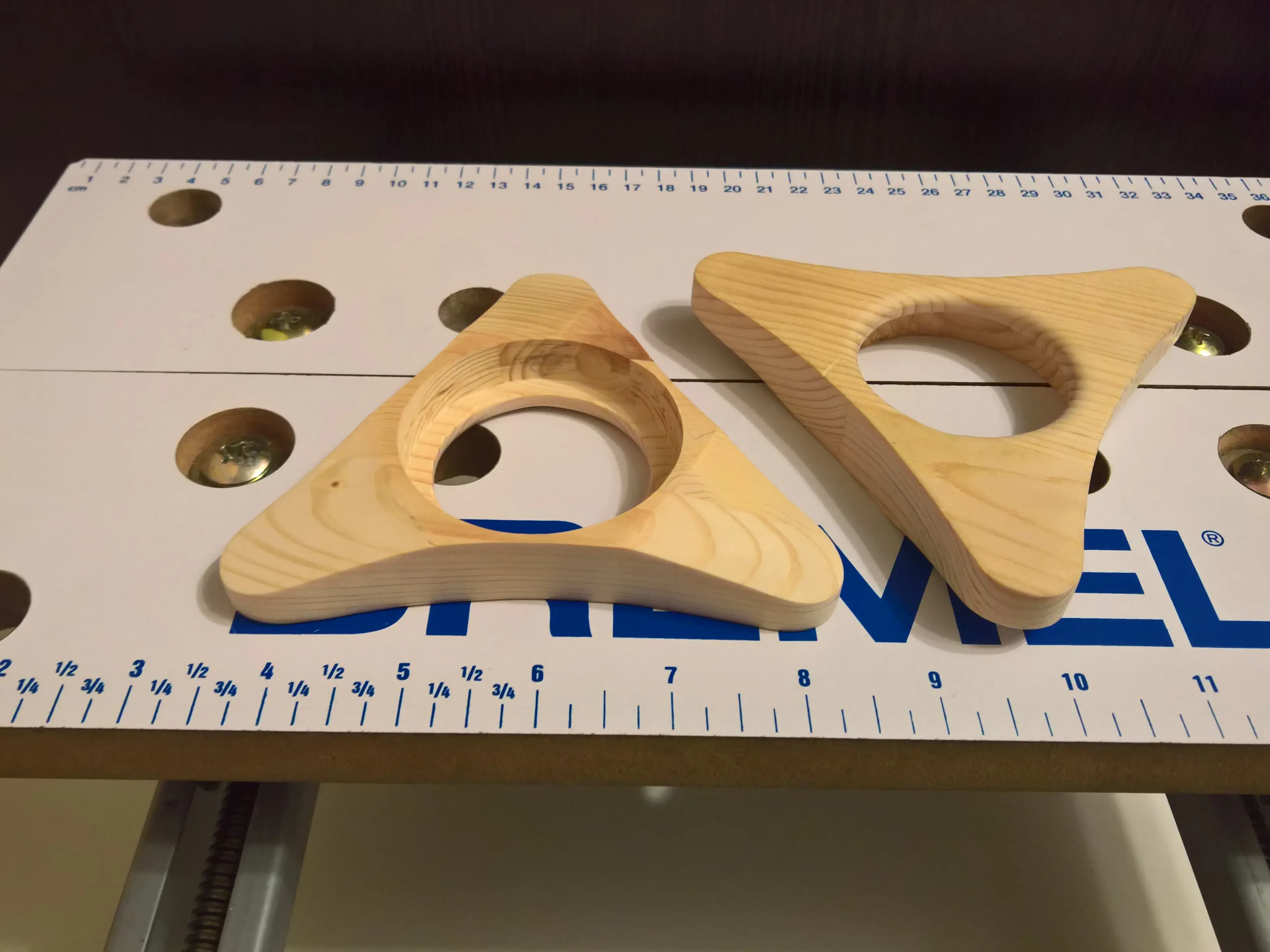 Обрезок мебельного щита толщиной 18мм (подставки), полые шары под роспись Ø100мм (корпуса) — отечественного производства.