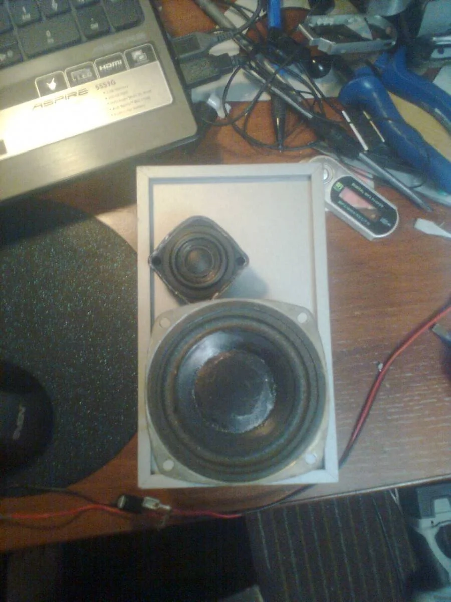 вот почти закончил переделку да что уж новую колонку собрал ) ( а мдшка лежит я её собрал и на полку до лучших времён ) получилось динамика 2 по 10 ватт усилитель 2 по 3 сей час доделываю переключатель на динамики будут такие режимы. один динамик подключен второй выполняет роль пассивного излучателя . два динамика подключены и работают синхронно . и два динамика работают в противофазе . а ещё установил фонарик из 6ти сверх ярких белых светодиодов так на всякий случай )