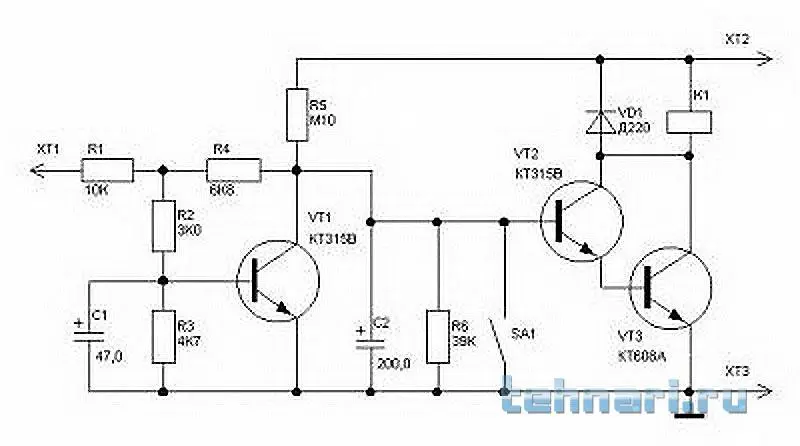 Эта схема, того у кого надо схема! 100% рабочая и всеми любимая. Для подключения второго канала, ставишь еще один R1 , но только на 15 к. Контакты S 2 припаивались на свободную ( среднюю ) пару выключателя питания усилителя, какие ставили в наших старых усилках. В режиме Выкл, эта пара замыкала базу управляющего транзистора на землю, и АС мгновенно отключались от выхода усилителя, тем самым что при включении, что при выключении полностью отсутствовали какие либо щелчки в АС. Питается схема практически любым питанием : от 5 вольт до сколько угодно. Все зависит от от реле. Транзисторы можно ставить тоже, практически любые. Главное, чтобы подходили по напряжению. Было бы очень не плохо, снабдить этот узел световой индикацией, чтобы было видно что и как. Я обычно делаю это дело на еще одном транзисторе и led индикаторе.