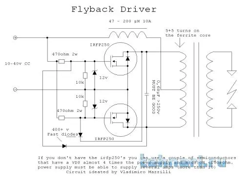Имеется строчный трансформатор ТДКС, подключённый к ZVS по схеме Flyback драйвера. Питание берётся из лабораторного источника питания 10А 24В.