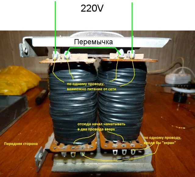 Похоже я что то не то сделал. Подключил и гудит. 3 секунды мне хватило чтобы выключить. И пощупал транс, теплый стал. ((( Что я сделал не так??? Перемычку я соединил, т.е. припаял проводом. Остальные два провода к розетке (вилка).George Smith