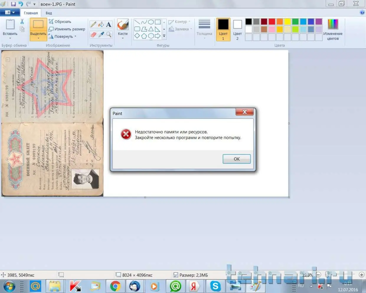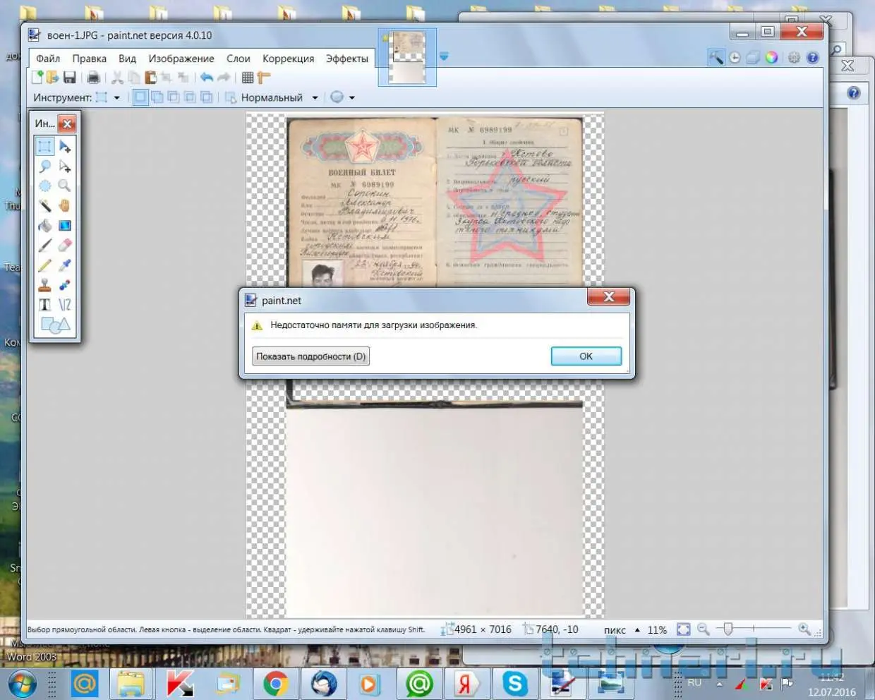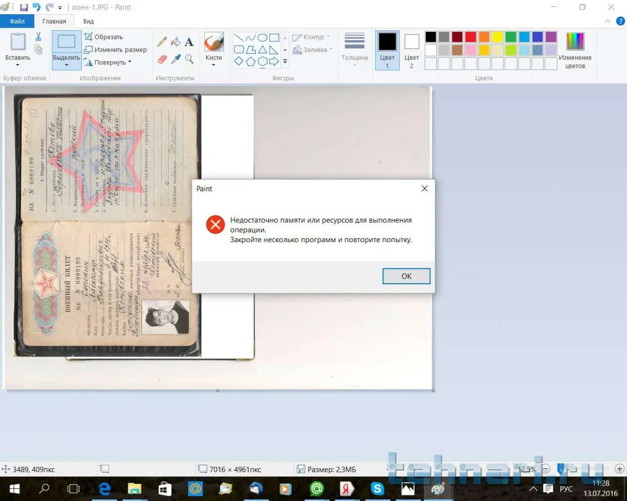 При добавлении 2-го (второго) изображения появляются окна с разными надписями - например: " Недостаточно памяти для загрузки изображения" или "Недостаточно памяти или ресурсов для выполнения операции" и т.д. - см. вложения.
