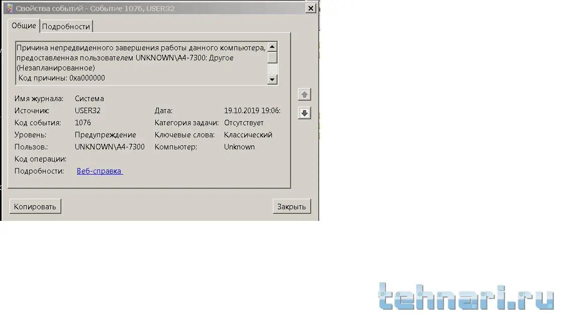Фото кода ошибки