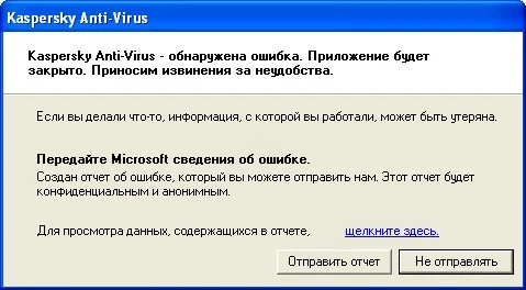 С Касперским проблему решил! А вот в некоторых других программах,например аська,при открытии периодически выскакивает окно что преложенные будет закрыто,отправить отчёт,после чего программа закрывается. Вопрос:проблемы могут быть с Windows XP,или с программами?