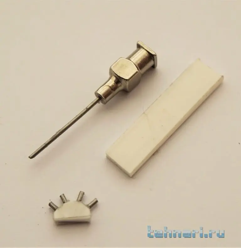 Срезаем пластиковые имитаторы ионных датчиков, из листового пластика и инъекционной иглы Ф0,8мм изготавливаем новые и клеим их на штатное место.корпуса
