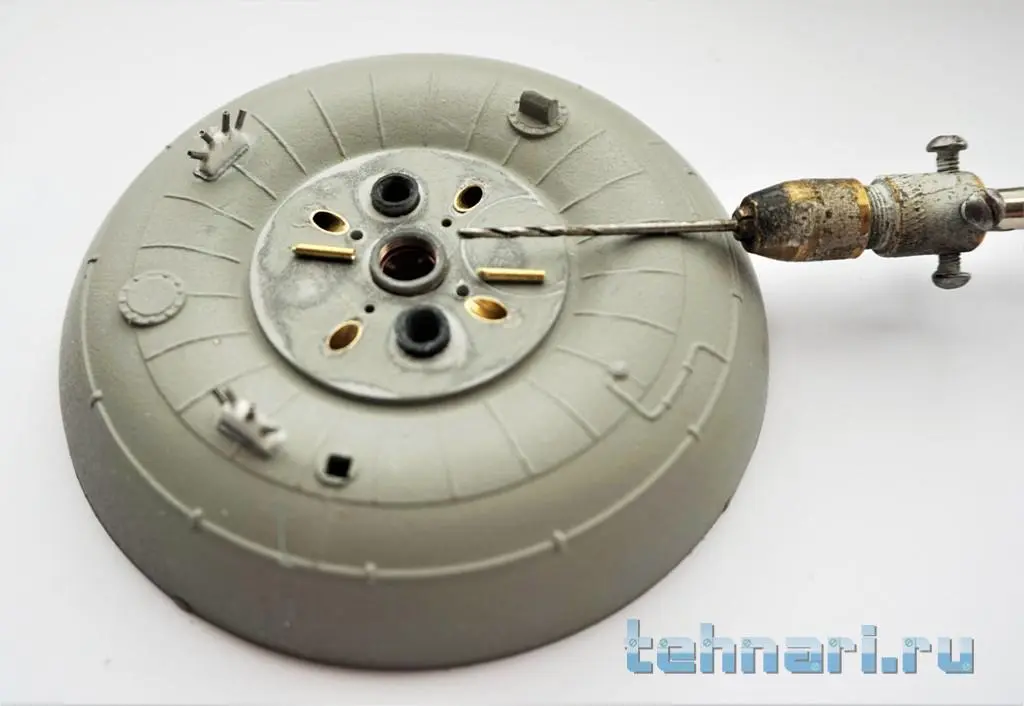 С оглядкой на фото днища реального корабля из латунной трубки и инъекционной иглы изготавливаем еще ряд сопел газовой системы точной ориентации корабля и вклеиваем их в просверленные в днище корпуса отверстия.
