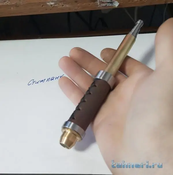 И вот доделал ручку, в этот раз перьевую. И как то получилось, соорудил подставку и шариковую ручку. Как обычно использовал, латунь, сталь, кожу и дерево. Вес перьевой ручки, без колпачка 42 грамма.