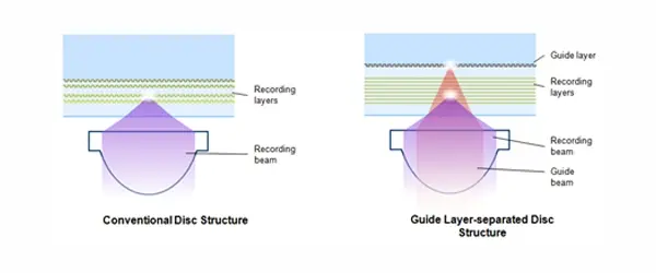 Предложенная технология основывается на использовании отдельного направляющего слоя, позволяющего упростить структуру носителя. В результате на одной стороне могут располагаться восемь слоёв данных объёмом 32 Гбайт каждый. Таким образом, суммарная ёмкость диска составляет 256 Гбайт. В случае двусторонних носителей этот показатель возрастает до 512 Гбайт.