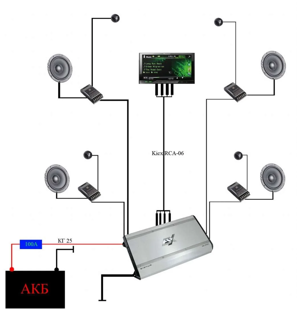 зачем так издеваться, фронт через крос к усилку а твитеры к ГУ, вам всё надо переделать в корне