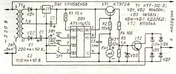 добрый вечер. возник вопрос .как и чем замерить напряжение на выходе блока питания для паяльника.замеряю и переменник и постоянник и только при вставленном паяльнике.измерял и аналоговым и цифровым вольтметром. и как регулировать?