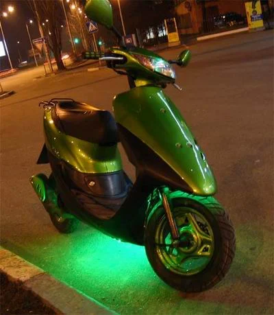 Дана задача, установить на днище мопеда подсветку. Изначально из ламп холодного свечения, питающихся от 12в. Позже заменить на светодиодную ленту питающуюся так же от 12в. Как я вижу реализацию этого.