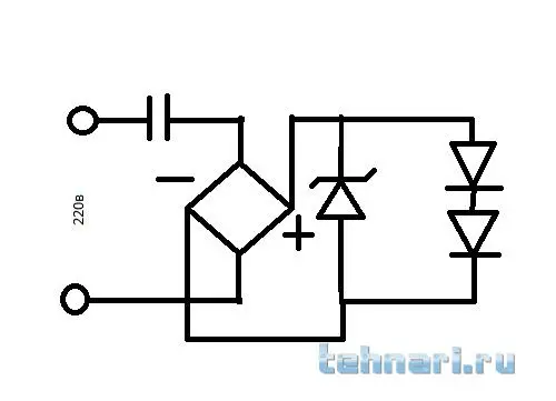 посмотреть бы на нееДля примера... Я собирал схемку на МОСФЕТе (без конденсатора от сети 220 В через выпрямитель). Её принцип действия это "ключ", который открыт при напряжении сети от 0 до 30 В (то есть в начале и конце полупериода). Так этого импульса (2-5 mSеc.) хватает что бы зарядить ёмкость в 470 мкФ совместно с нагрузкой. После закрытия ключа "светики" разряжают конденсатор до следующего импульса заряда. Схемка с радиолоцмана...