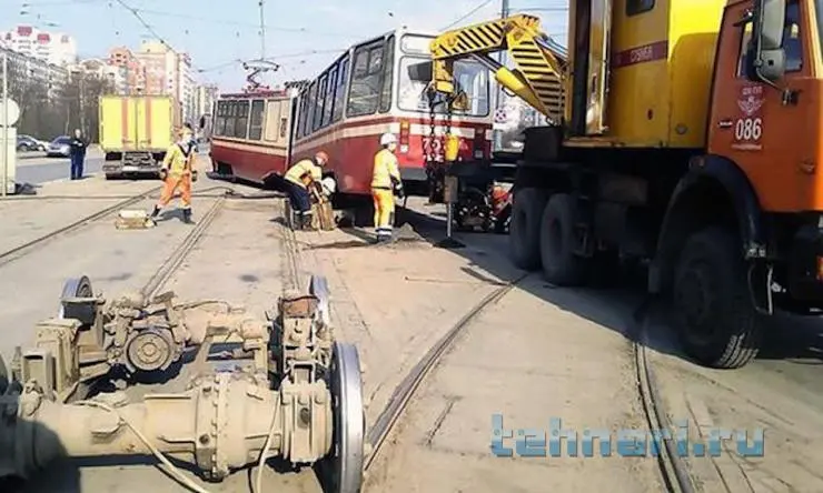 Двухвагонный трамвай сошел с рельсов на Товарищеском проспекте, в Невском районе Санкт-Петербурга. Состав поворачивал на большой скорости, и внезапно просто рассыпался на части. У него отлетела колесная пара, и трамвай вылетел на проезжую часть. По счастливой случайности, никто не пострадал. Происходящее снял на видео очевидец. По предварительным данным, водитель не рассчитал силы, совершая маневр, и на скорости не вписался в поворот.